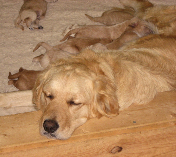 Our dogs are lovable, well-mannered, intelligent dogs with a great charm. They are easily trained, and always gentle and patient with children. They are confident, very loyal and eager to please. They are moderately active and make outstanding family dogs. Our dogs enjoy pleasing their masters, so obedience training is a simple task. Most Labs, Golden's and Standard Poodles excel in obedience and agility competitions. Because of their overly gentle nature, most of these dogs have very little guarding instincts, however they do make good watchdogs as they loudly signal a stranger's approach.